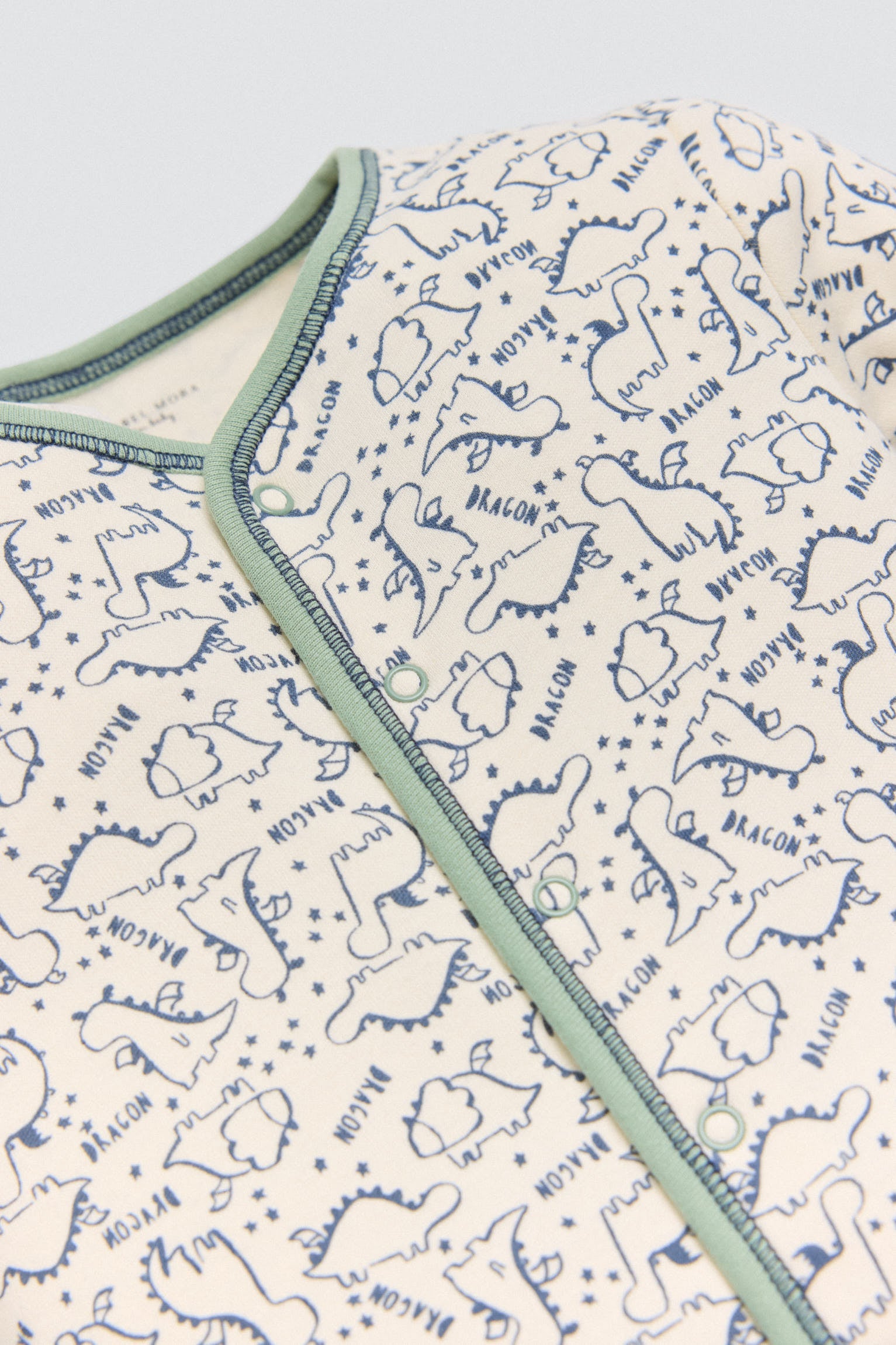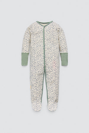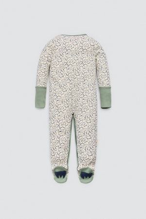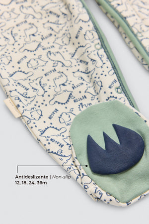 Pelele de bebé com divertido design de dinossauros, pés fechados e fecho frontal. Confecionado em algodão natural misto com interior afelpado, proporciona suavidade extra e conforto em todos os movimentos.