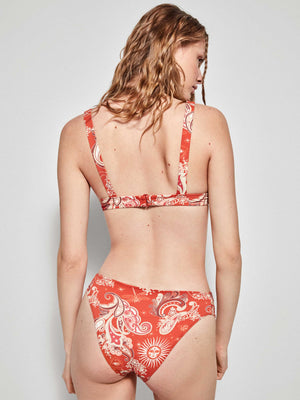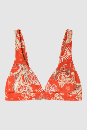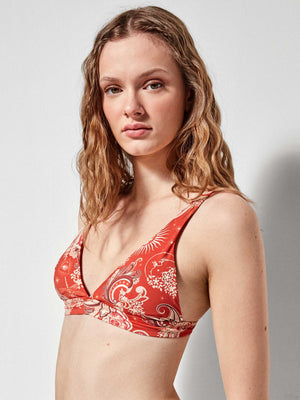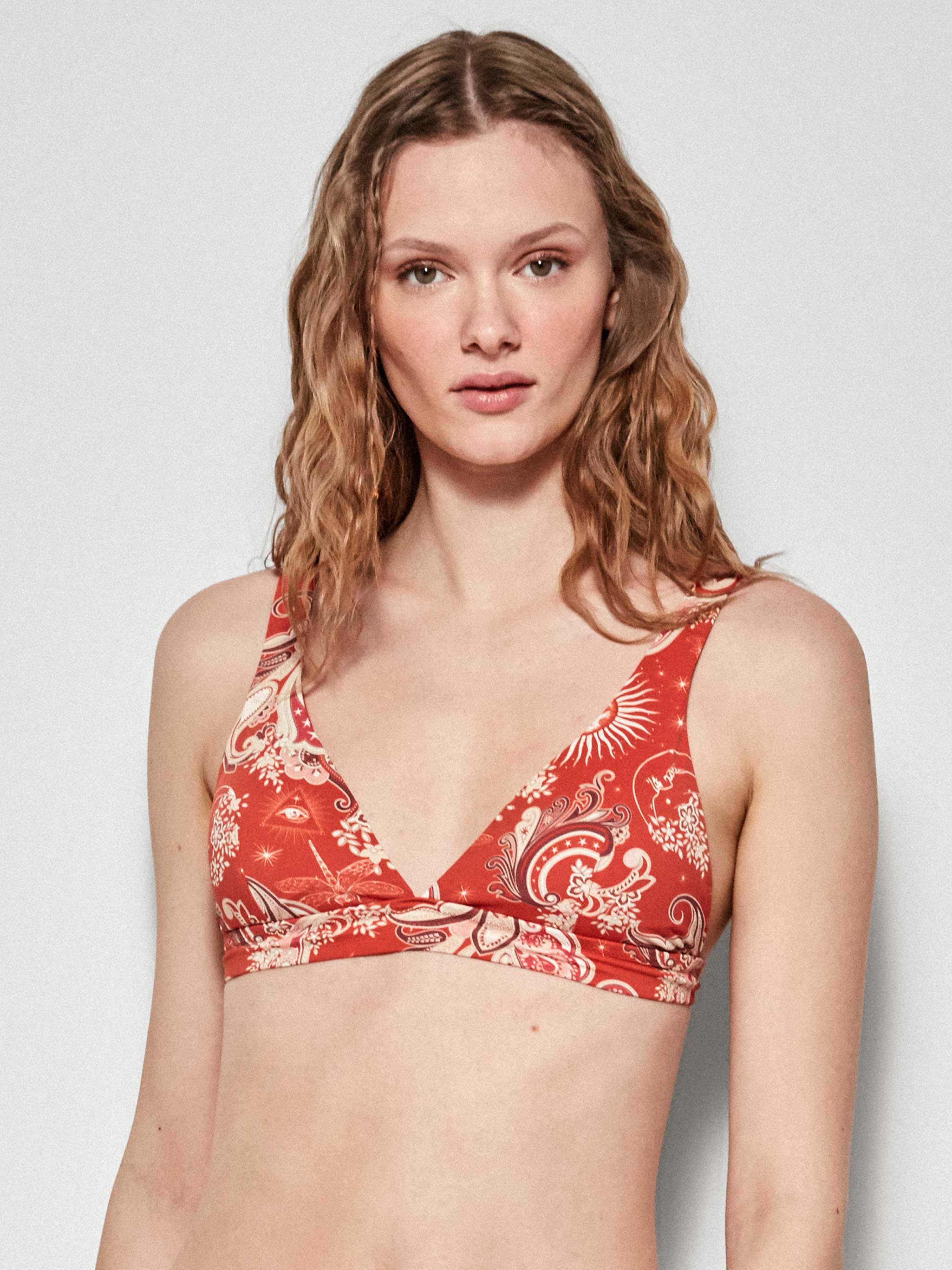 Top de biquíni sem aro e com espuma removível em tecido estampado. Alças e costas ajustáveis que permitem a adaptação a diferentes tamanhos de copa de B a C.