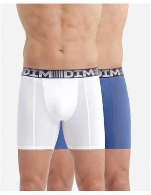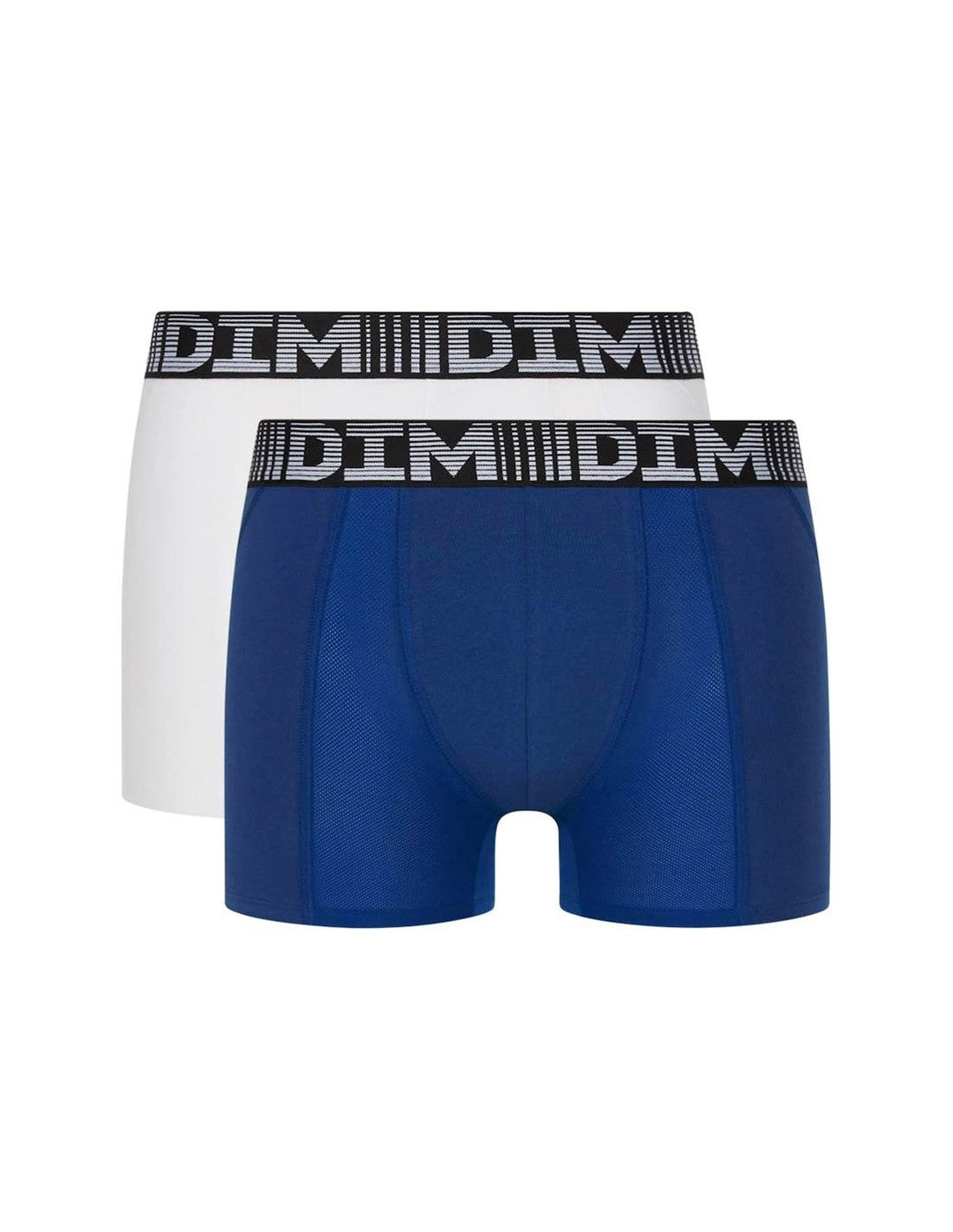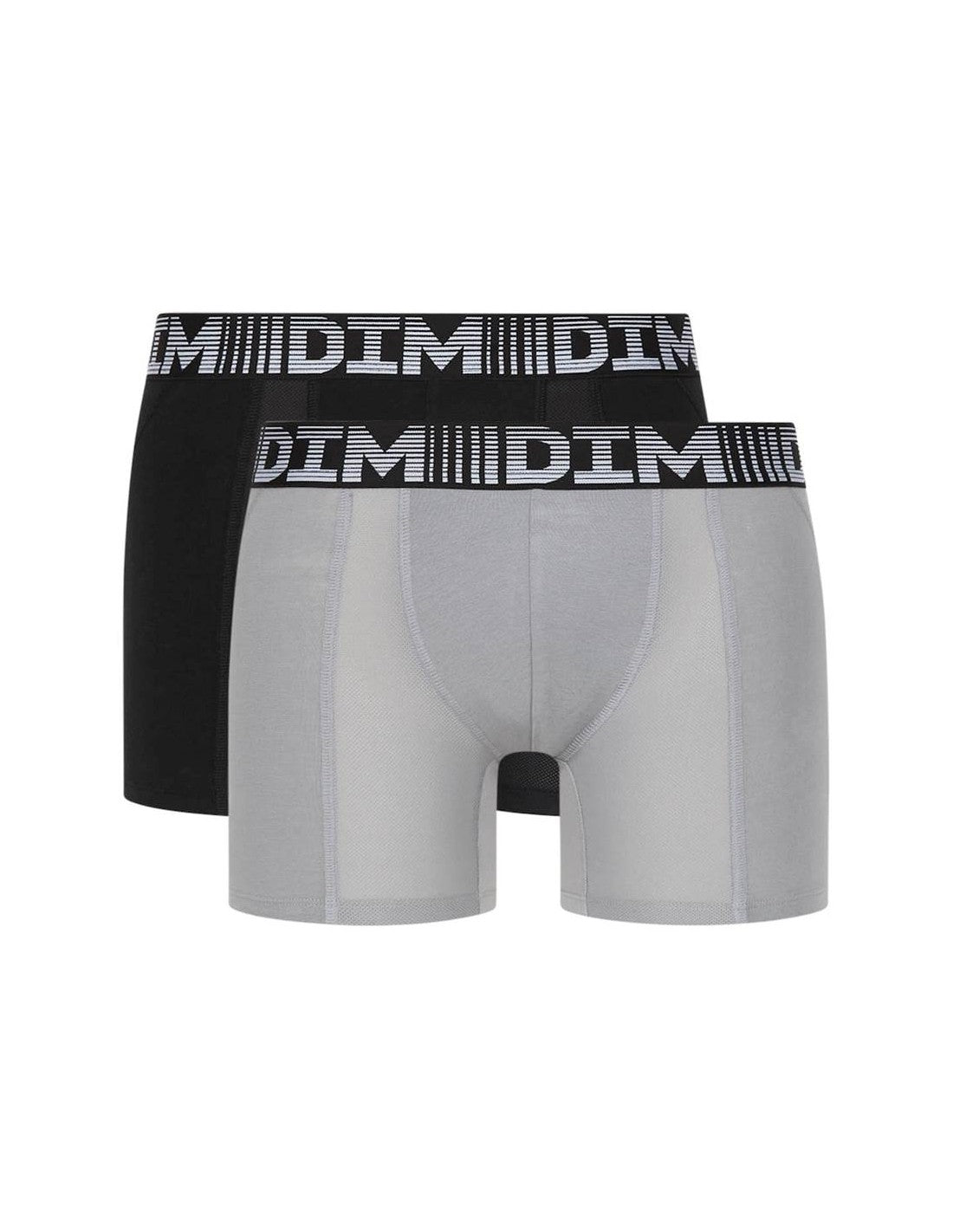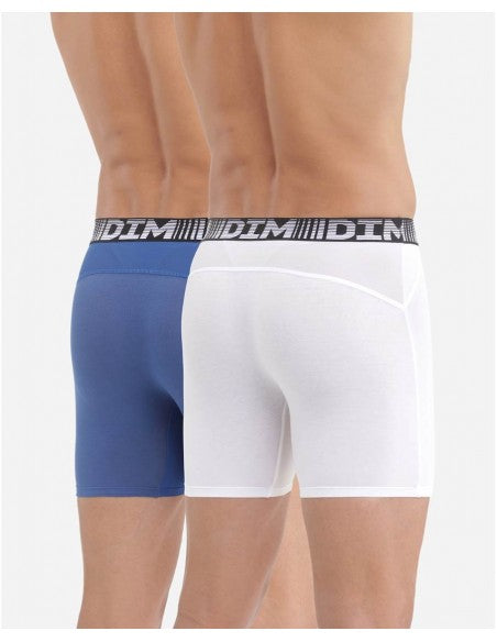Pack 2 Boxer da marca Dim. Este pack é composto por duas cuecas boxer compridas em cores sólidas, confeccionadas em tecido de algodão 3D Flex e com malha nas “Zonas de Ar” na região lombar e na virilha, oferecem ótima ventilação e incomparável liberdade de movimento.