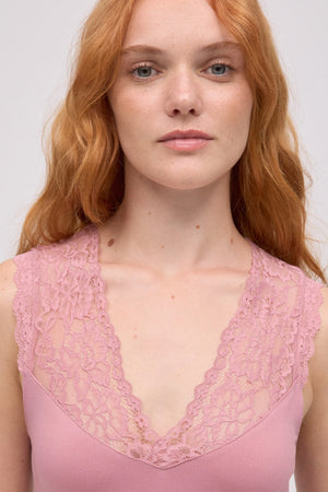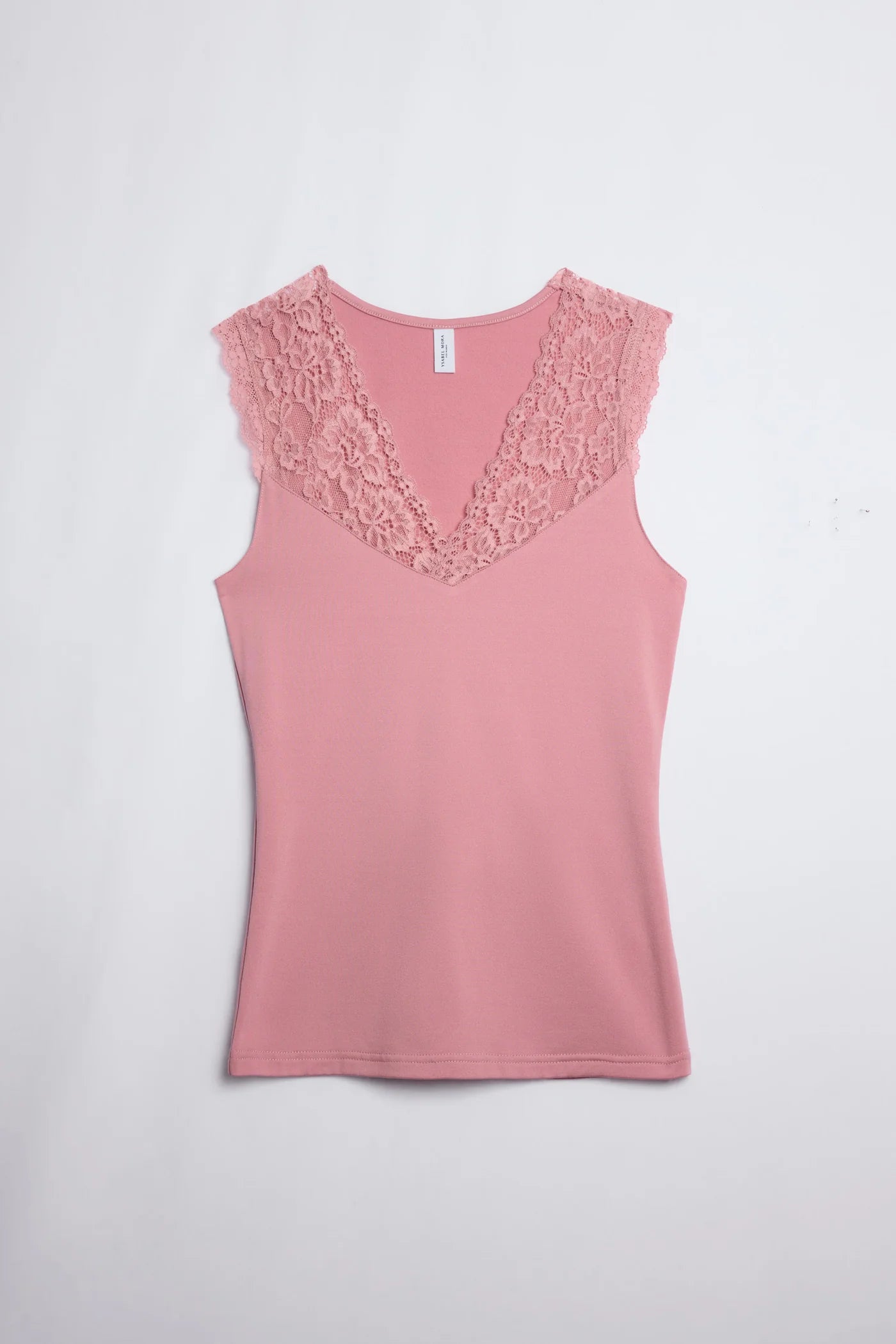 Camisola Térmica de Alças para Mulher com Gola em Bico e Renda