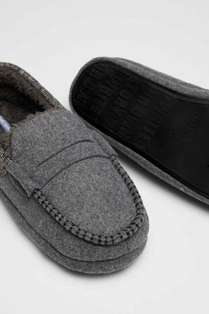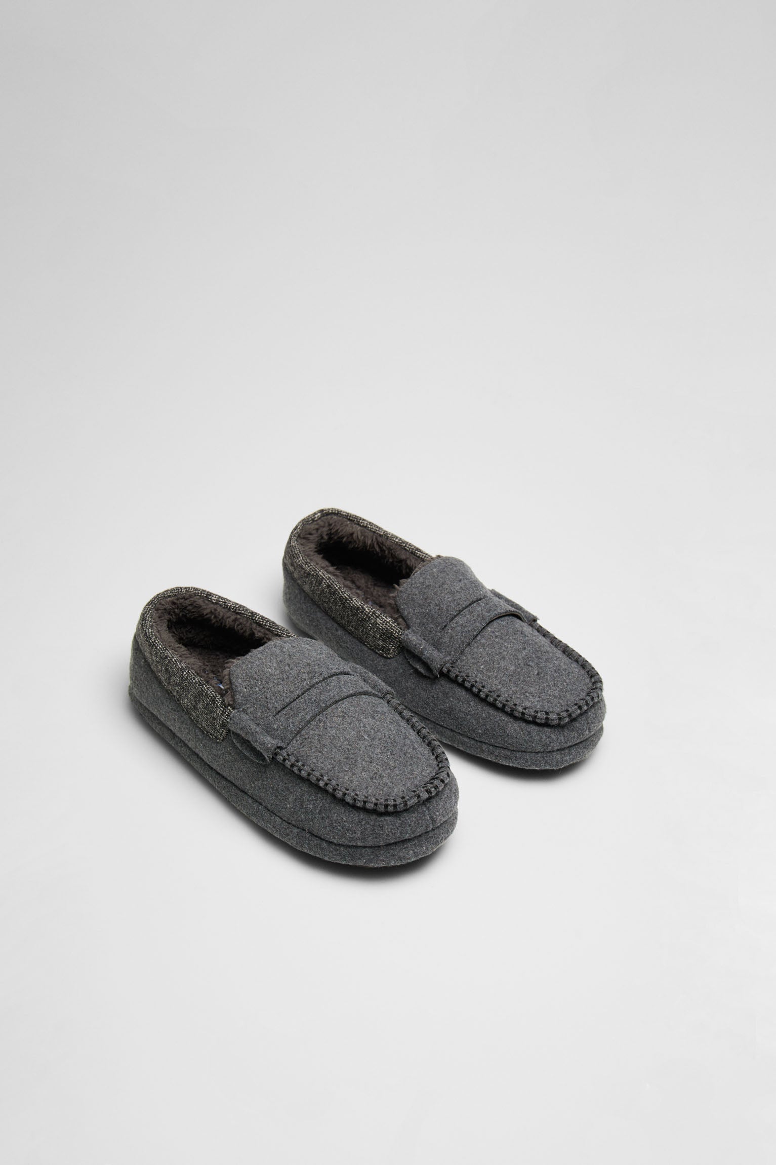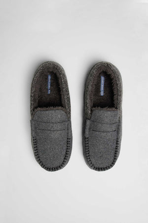 Chinelos de homem estilo mocassim, fechados com biqueira quadrada, com pelo macio no interior que os torna muito quentes. O pelo macio no interior torna-as muito quentes e aconchegantes.