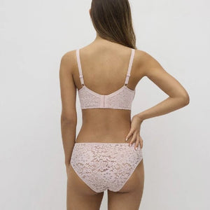 Conjunto de sutiã com aro e cueca midi de renda floral