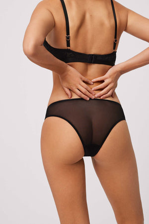 Cuecas brasileiras com pormenores semi-transparentes. Tecido macio e leve para maior conforto. Esta peça de vestuário exala sensualidade e design.