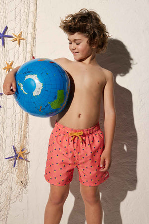 Coleção de natação para crianças. Van Trip. Calções de banho para criança com estampado de ananás.