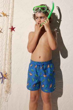 Coleção de natação para crianças. Van Trip. Calções de banho para criança com estampado de dinossauro.