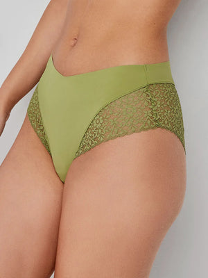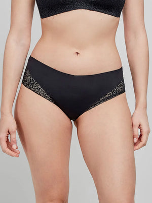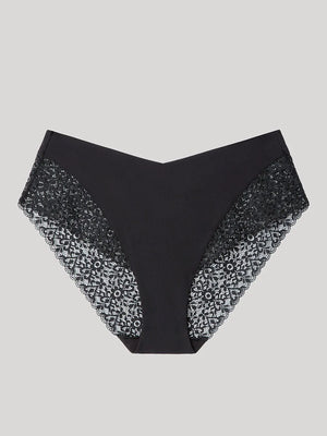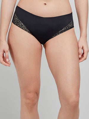 Cuecas de cintura subida com tecido de microfibra cortado a laser no cós e renda extra plana que evita marcas sob a roupa. Disponível em duas cores.