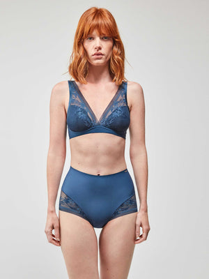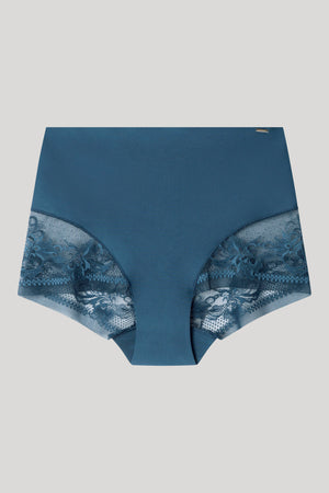 Cuecas de cintura alta com acabamentos sem costuras que evitam marcas sob a roupa e tecido laminado na cintura que se adapta ao corpo como uma segunda pele. Renda extra plana muito delicada e feminina. Combine-o com o sutiã correspondente.