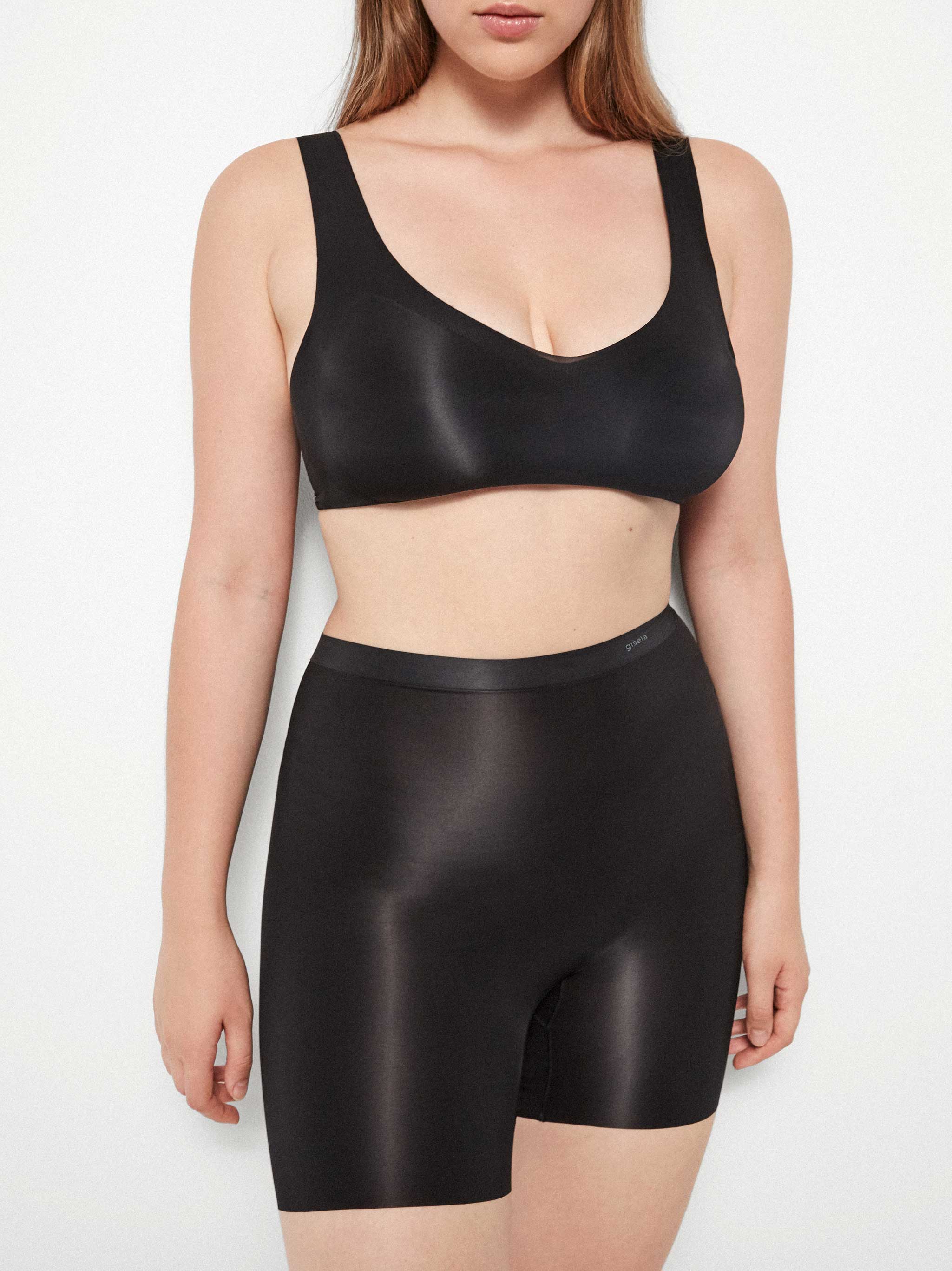Culotte em tecido fino, leve e transparente como uma segunda pele, com acabamentos termofundidos e cortados a laser. Parte traseira pré-formada para maior adaptabilidade. Disponível em várias cores.