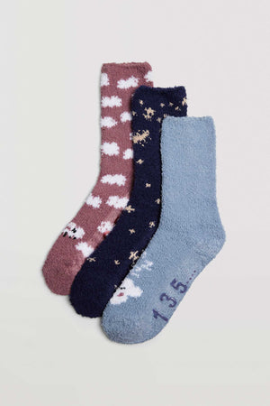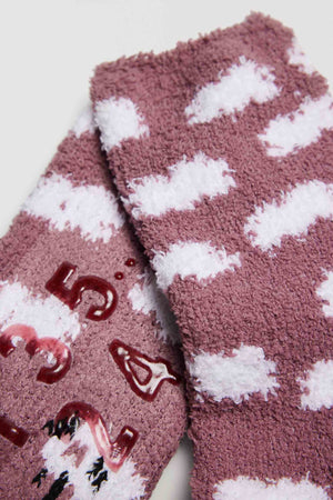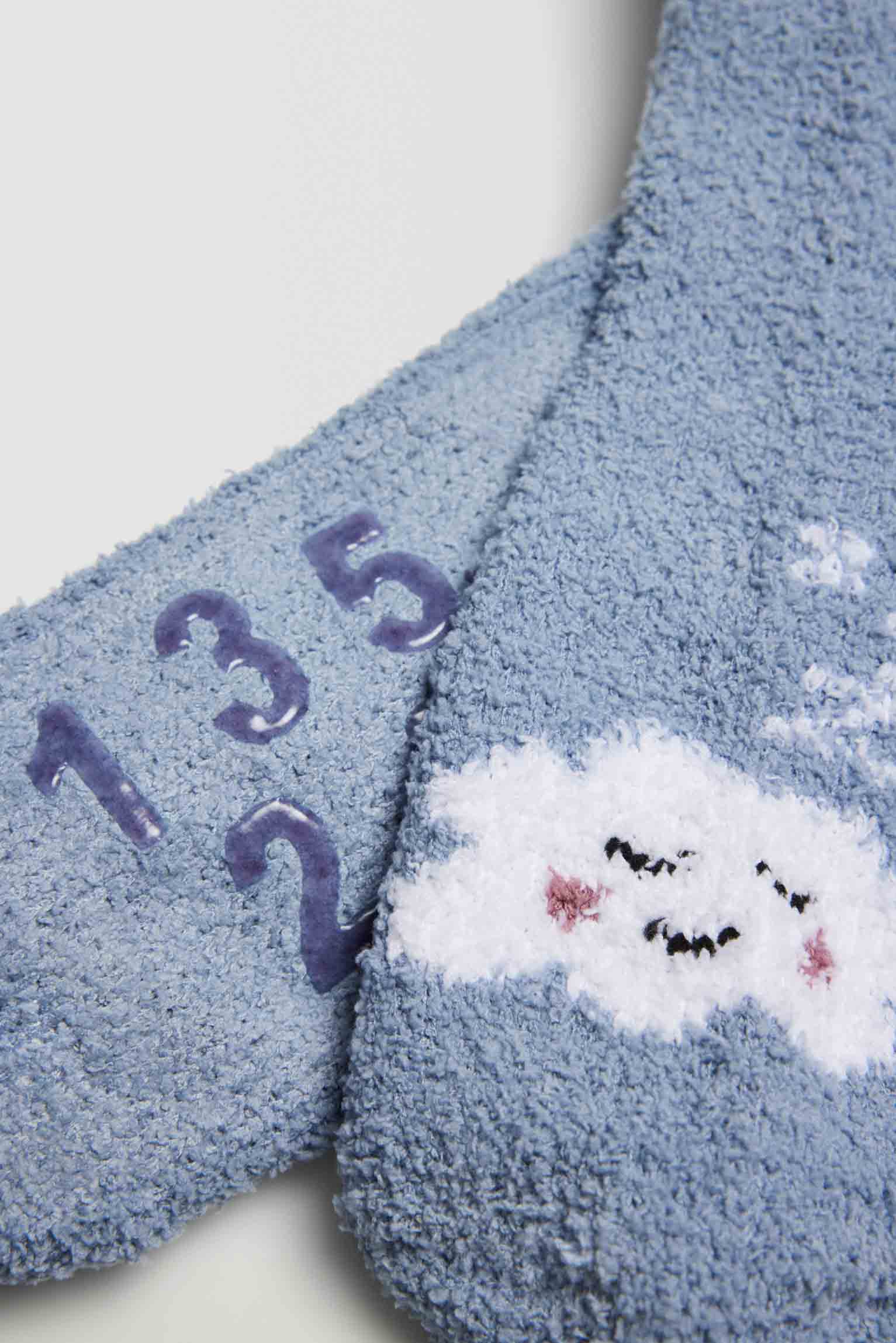 Meia de flanela antiderrapante para mulher. Proporciona um toque agradável e extra suave. O punho anti-pressão garante um apoio sem aperto. O acabamento em silicone na sola torna-as o acessório ideal para um descanso despreocupado.