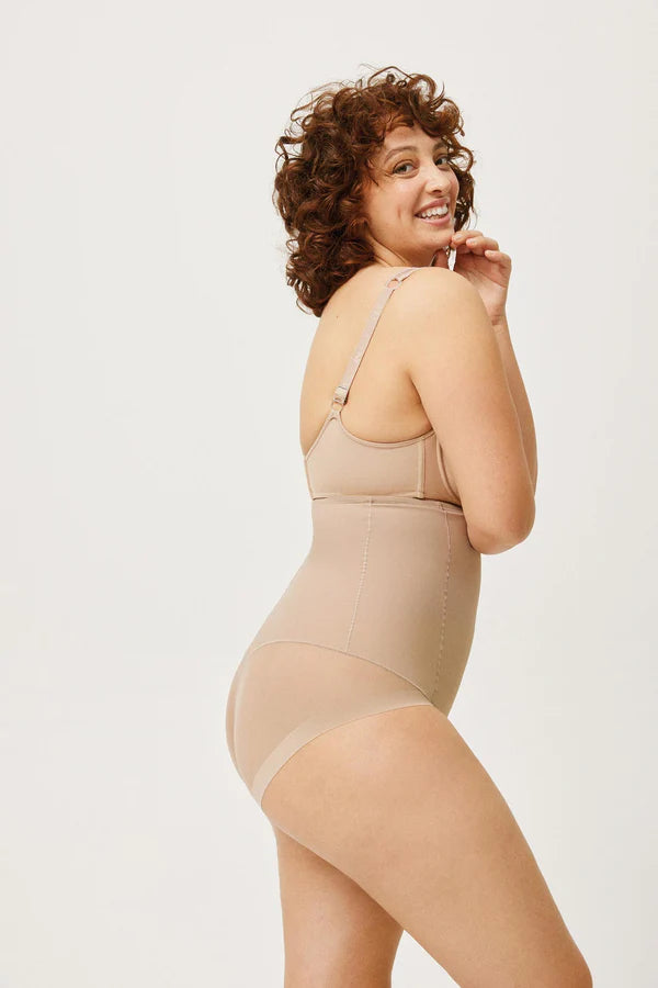 Cueca alta de controlo em microfibra com efeito redutor no abdómen e nas ancas, capaz de reduzir até 2 tamanhos. Graças aos acabamentos cortados a laser, é invisível sob a roupa, garantindo conforto e discrição.