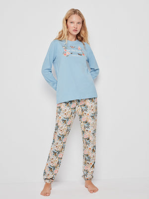 Pijama comprido de mulher em algodão com estampado floral