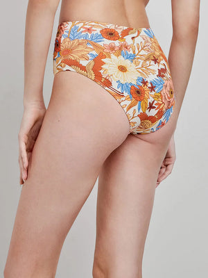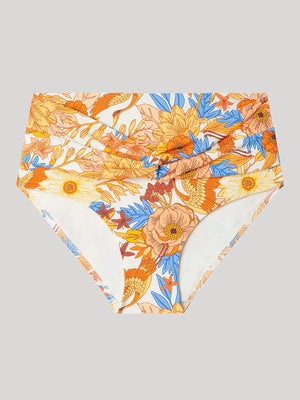 Cueca de biquíni de cintura subida em tecido com estampado floral e detalhe de nó na cintura que estiliza a zona. Combine com o top do biquíni correspondente.