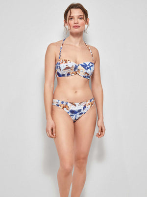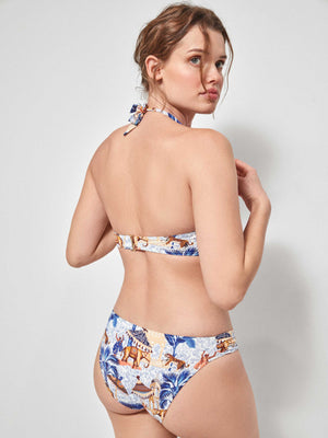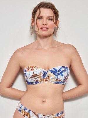 Top de biquíni cai-cai com aro de silicone e espuma em tecido estampado africano. Alças removíveis e alças ajustáveis que permitem a adaptação aos tamanhos de copa de B a C.