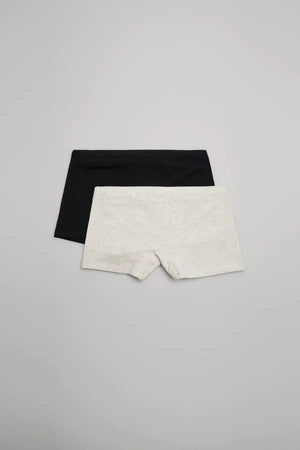 Pack de 2 bóxers infantis em tecido Cotton Nature. As fibras naturais deste material conferem maciez extra à peça. Os acabamentos com costuras finas favorecem uma maior adaptabilidade e ajuste ergonómico.
