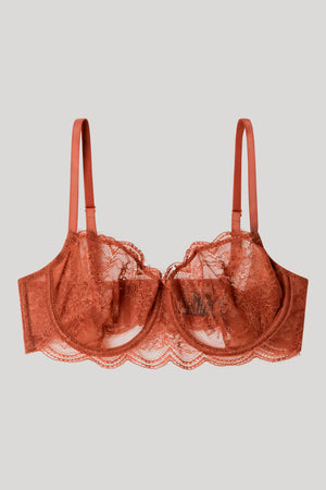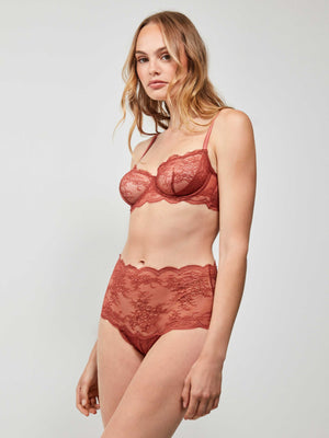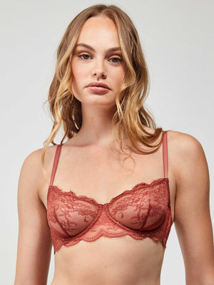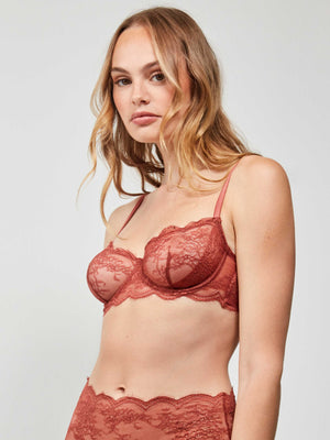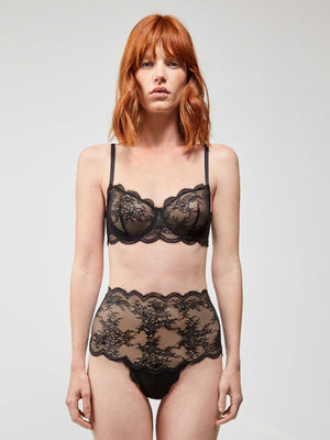 Sutiã balconette com aro e sem espuma em tecido rendado. Fecho traseiro em quatro posições e alças ajustáveis. Disponível em copas B e C em duas cores. Combine-o com a cueca a condizer.