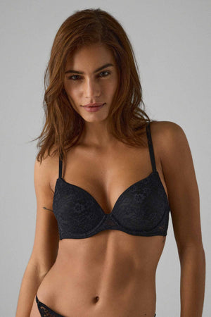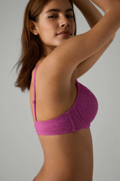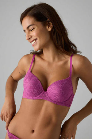 Este sutiã combina na perfeição a sedução do push up com a elegância da renda, desenhado para realçar o seu decote e oferecer-lhe um óptimo suporte. Os aros proporcionam um suporte adicional, enquanto as copas push-up realçam e definem naturalmente o seu peito. Além disso, o seu design versátil oferece a opção de o usar cruzado nas costas para se adaptar a diferentes peças e estilos. A renda requintada acrescenta um toque de sofisticação e feminilidade, garantindo que se sente confiante e elegante em qualquer ocasião.