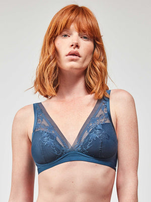 Sutiã sem aro com espuma em tecido de renda floral com alças e detalhe de decote. Alças ajustáveis e fecho traseiro.