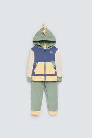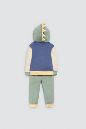 Conjunto de bebé com casaco de fecho e calças compridas afelpadas.