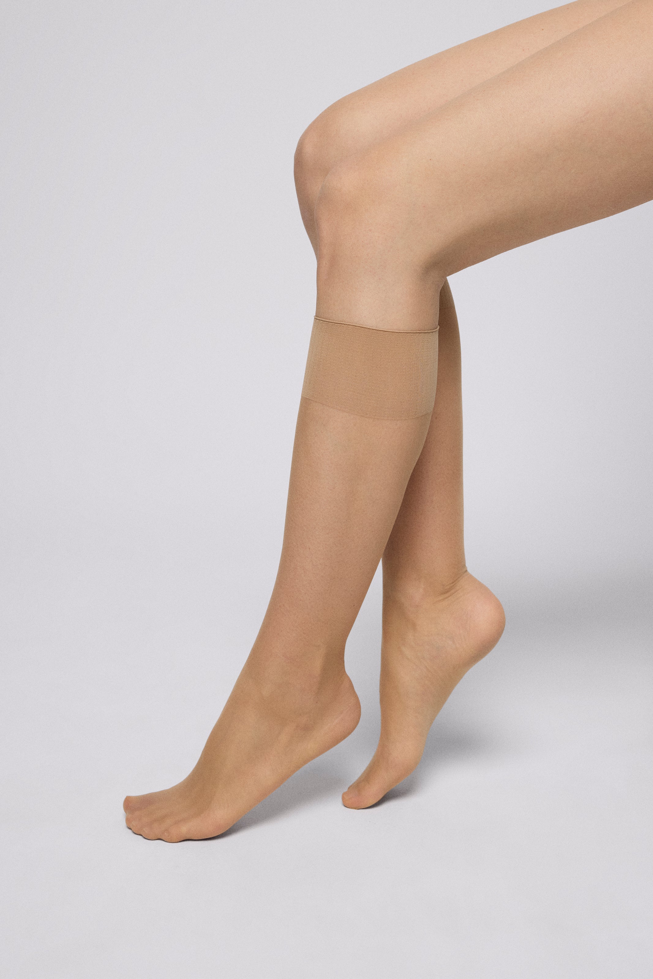 Pack de 2 mini-meias femininas abaixo do joelho, 10 denier, em cor natural. Ultra leves, transparentes e confortáveis, perfeitas para o dia a dia ou para ocasiões especiais.