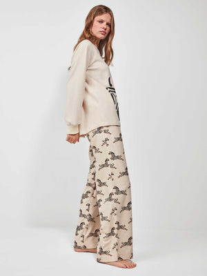 Pijama polar macio com estampado de micropolares, oferecendo o melhor em suavidade e conforto. A camisola de manga comprida, com um estampado atraente em ambas as faces, confere um toque dinâmico e moderno ao look. As calças, com corte largo e estampado a condizer, oferecem total liberdade de movimentos, enquanto a cintura elástica ajustável garante um ajuste confortável. Um conjunto ideal para relaxar em casa com estilo e conforto durante todo o ano.