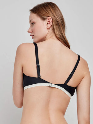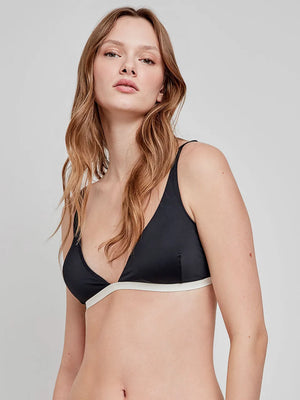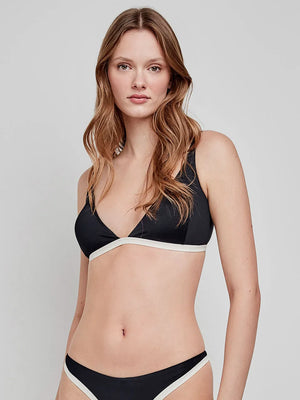 Top de biquíni triangular sem aro com espuma removível e detalhe de vivo contrastante. Combine com a cueca a condizer.