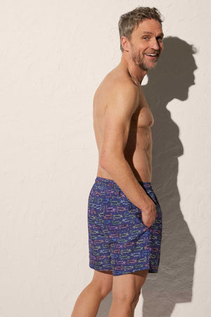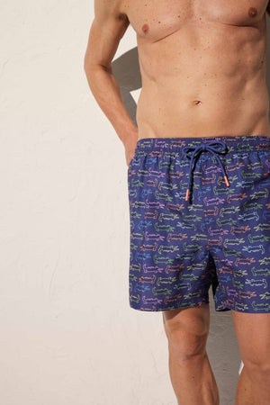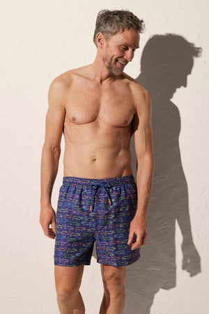 Coleção de fatos de banho. Fato de banho de comprimento médio para homem. Tecido de secagem rápida.