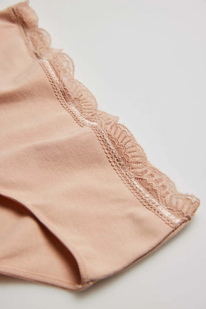 Cueca midi em tecido Cotton Nature. As fibras naturais desse material conferem maciez extra à peça. Os seus acabamentos com costuras planas invisíveis evitam marcas e favorecem maior adaptabilidade e um ajuste ergonómico perfeito. Modelo básico de grande conforto pensado para o dia a dia. Decorado com renda. Feito com material antialérgico.