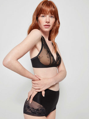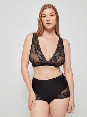 Sutiã sem aro e copas de foam ultra ligeiro para maior conforto. Renda extraplana muito delicada e feminina, com acabados satinados sem costuras que evitam marcas. Tecido laminado que se adapta ao corpo como uma segunda pele e alças reguláveis. Fecho traseiro de quatro posições.