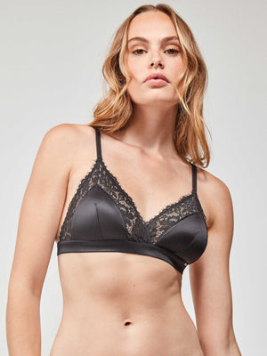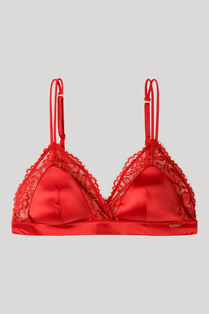 Sutiã triangular sem aro, espuma removível e detalhes em renda. Alças finas e ajustáveis. Disponível em duas cores.