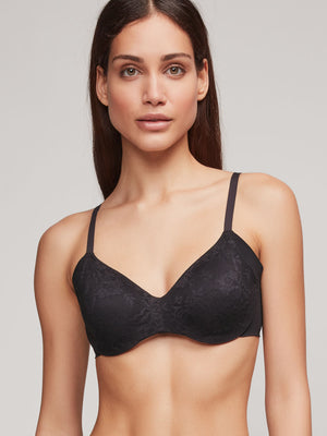 Sutiã com aro, sem espuma e copas leves acolchoadas em tecido spacer, super adaptáveis, que modelam o peito sem adicionar volume. Padrão de modelagem que minimiza irregularidades nas axilas. Ombro laminado com elásticos termofundidos que não deixam marcas. Alças ajustáveis extramacias com possibilidade de curvatura e fecho traseiro em 4 posições.