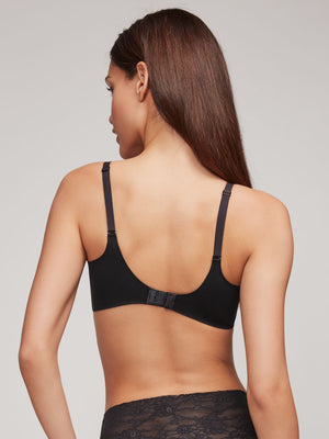Sutiã com aro, sem espuma e copas leves acolchoadas em tecido spacer, super adaptáveis, que modelam o peito sem adicionar volume. Padrão de modelagem que minimiza irregularidades nas axilas. Hombro laminado com elásticos termofundidos que não deixam marcas. Alças ajustáveis extramacias com possibilidade de curvatura e fecho traseiro em 4 posições.