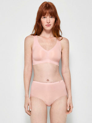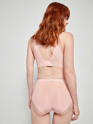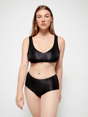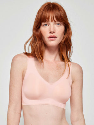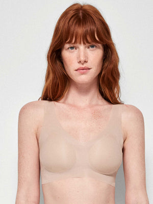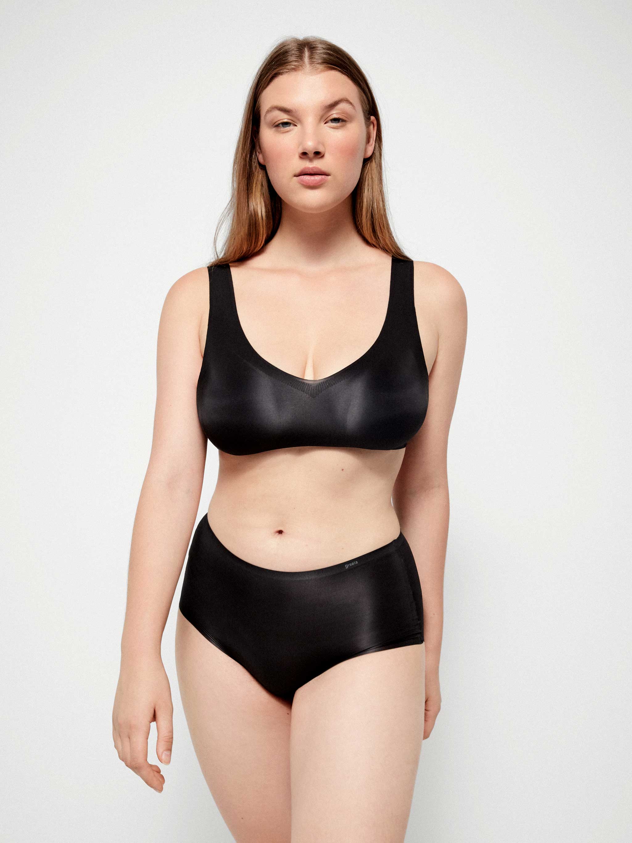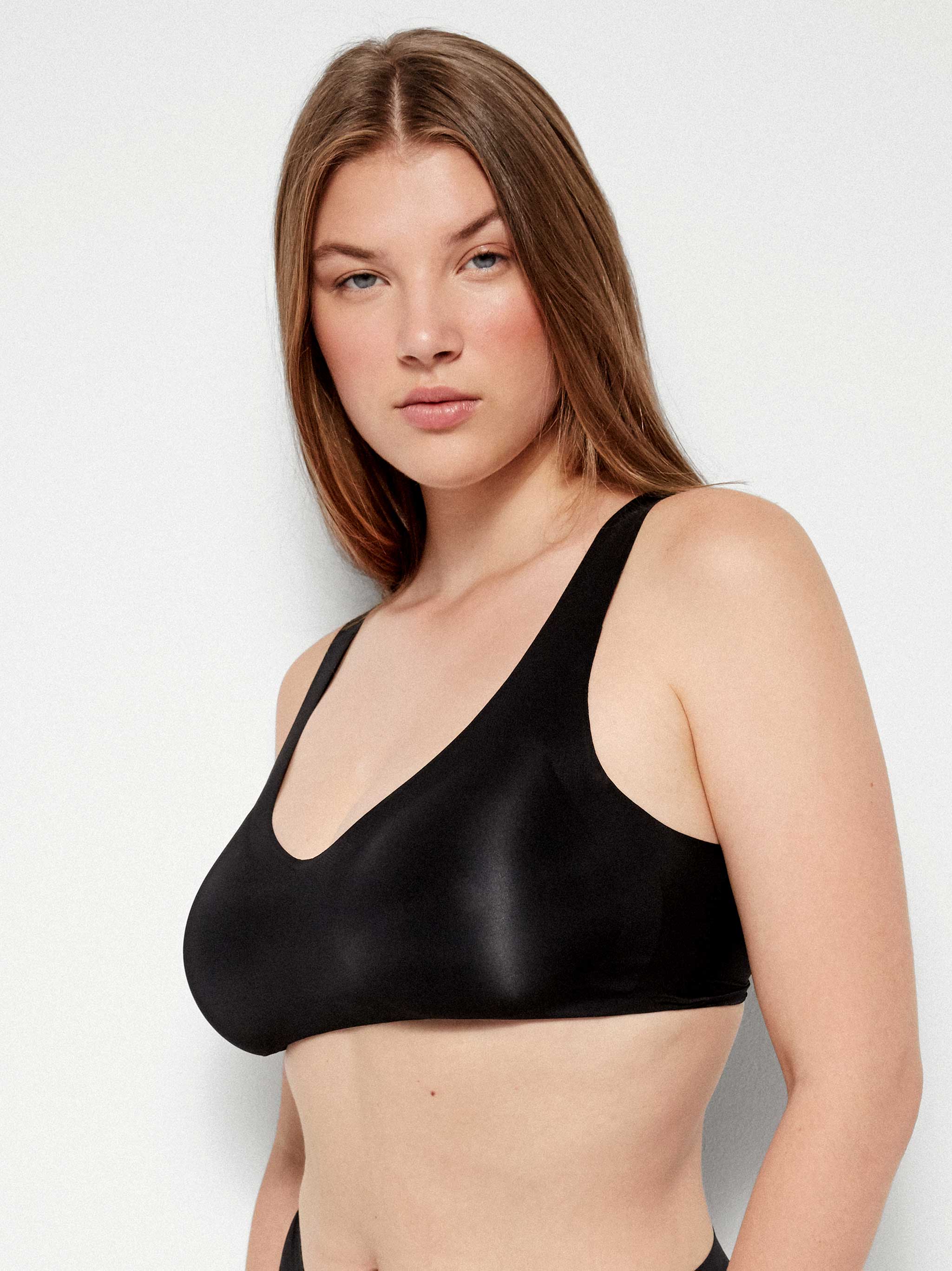 Soutien sem aro com espuma removível em tecido fino, leve e transparente como uma segunda pele, com acabamentos termofundidos, cortado a laser e pré-formado para o máximo conforto.