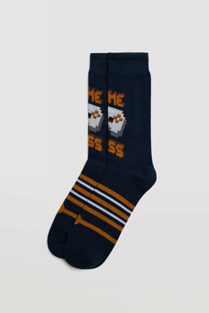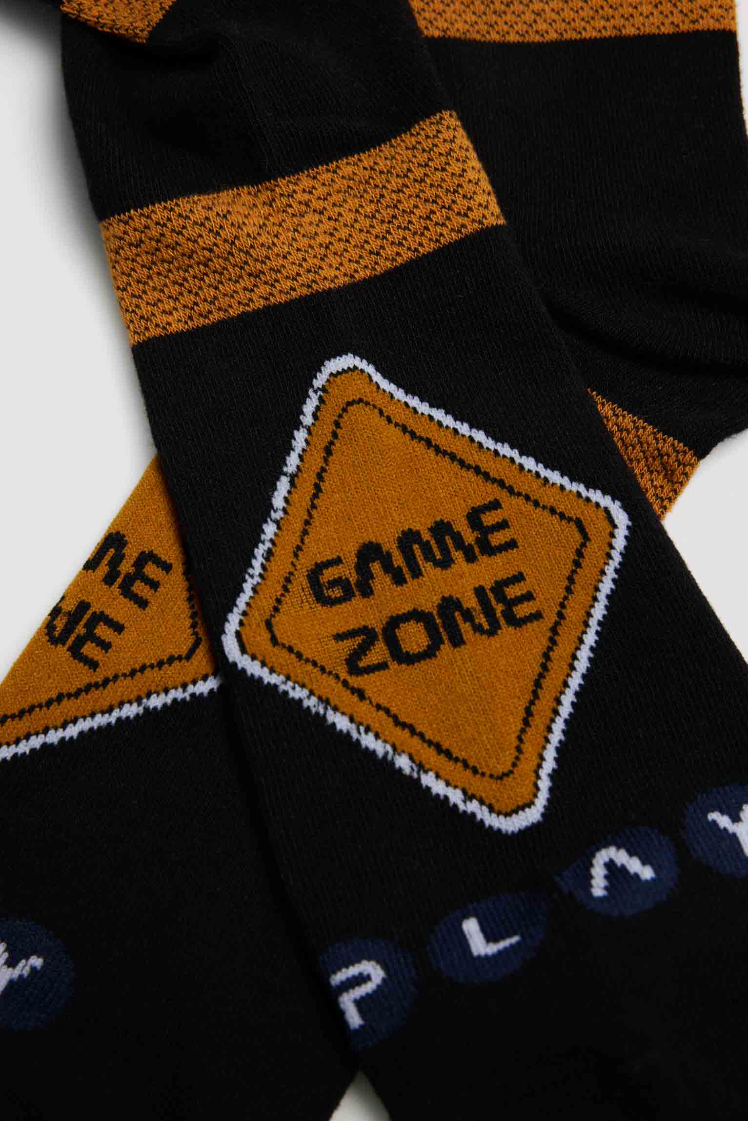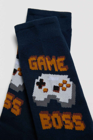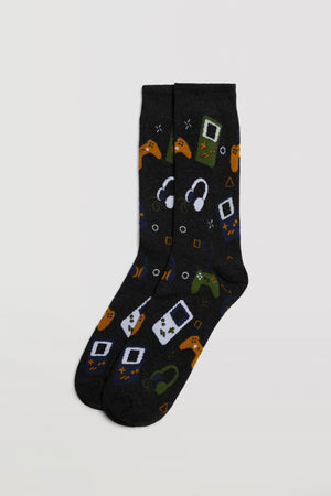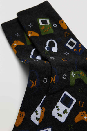 Meias estampadas para homem. Ideais para uso quotidiano. Punho especial anti-pressão para um maior conforto e uma utilização total. Design inspirado nos videojogos.