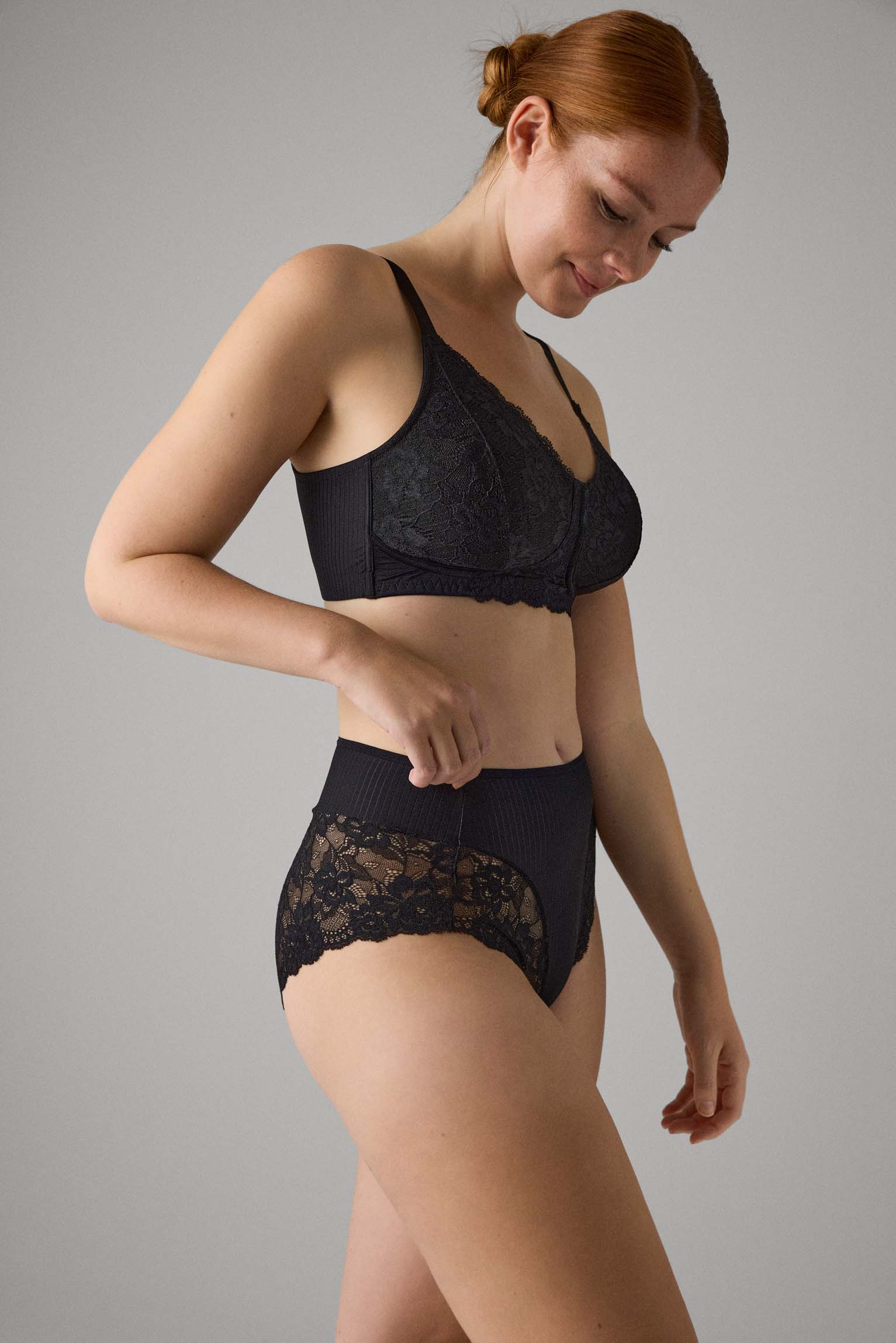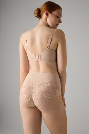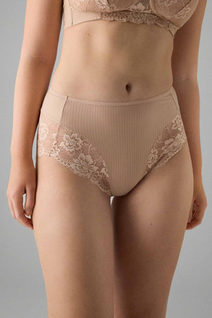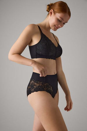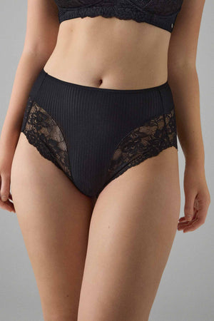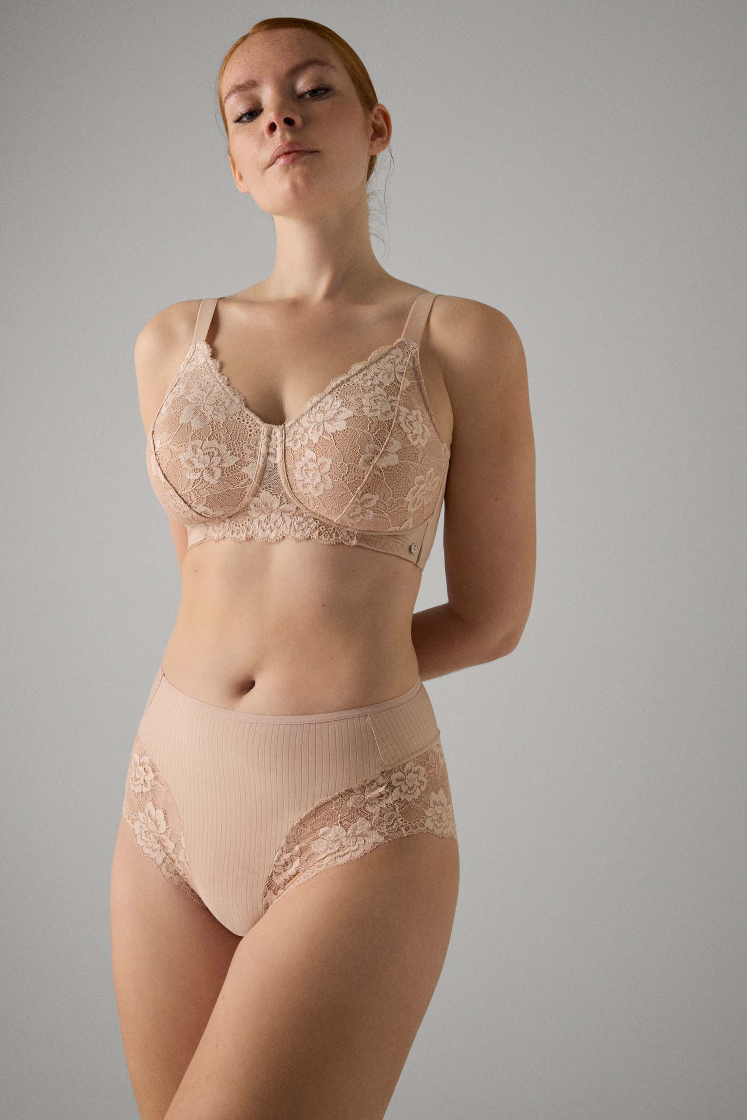 Esta peça de lingerie combina elegância e conforto num design charmoso. A renda floral acrescenta um toque de feminilidade e sofisticação, enquanto o corte alto oferece uma cobertura completa e lisonjeira. O seu tecido macio garante uma sensação de conforto durante todo o dia, fazendo com que se sinta confiante e elegante em todos os momentos.
