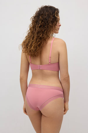 Cueca midi com detalhes em renda nas bordas. Sensualidade sem perder o conforto. Combine com um soutien da coleção para um look perfeito.