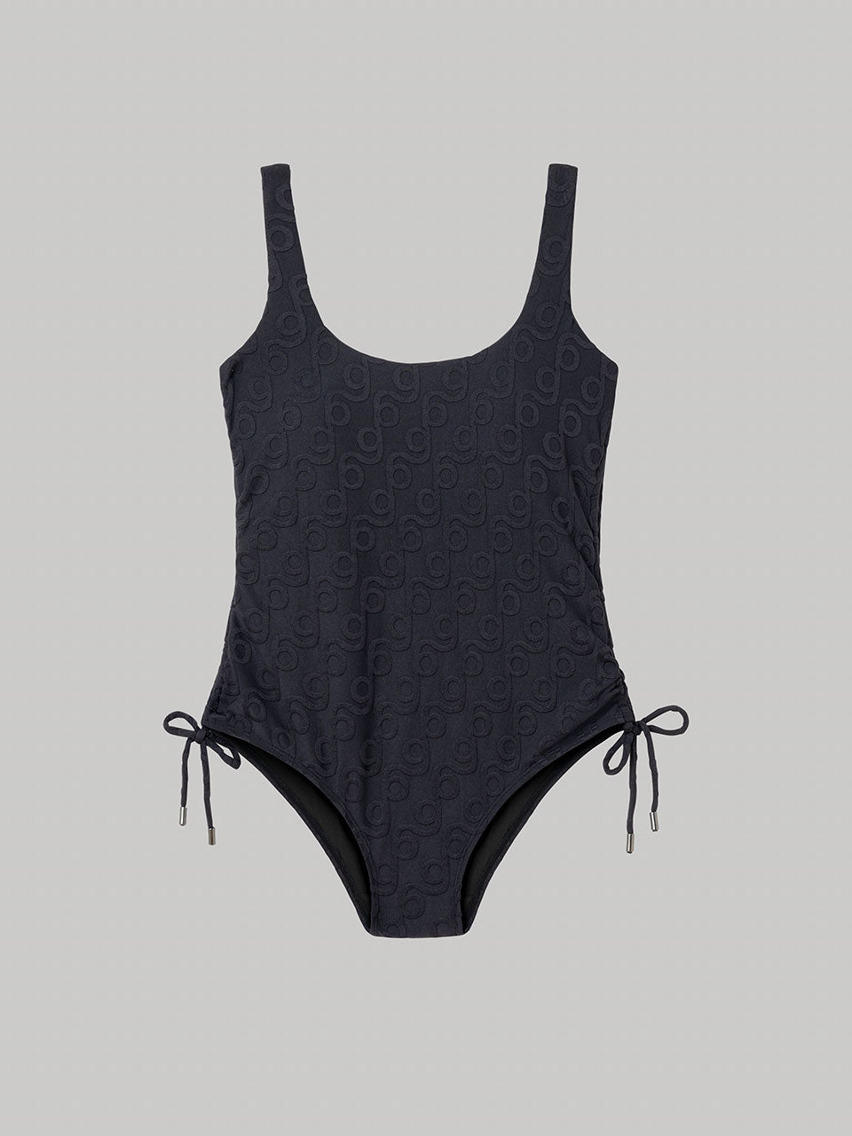 Fato de banho sem aros em tecido com estampado geométrico e decote lombar.