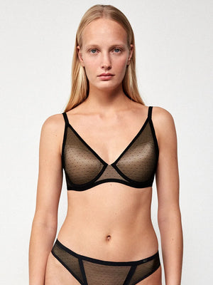 Sutiã bralette de capacidade, com aros e copas que oferecem um suporte ótimo. Tecido plumetti delicado e feminino que, tanto na base como nas costas, adere à microfibra e se adapta ao corpo. Padrão moldador de axila, que juntamente com as costas anatômicas, minimiza irregularidades. O detalhe do plumetti transparente oferece maior cobertura e feminilidade. Acabamentos invisíveis e termofundidos que não marcam, e garantem um grande conforto.